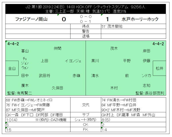 2019 J2 第1節 岡山 0-1 水戸 @Cスタ