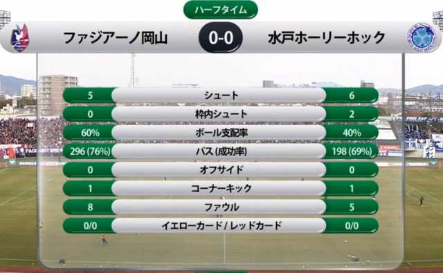 DH上田の直接FK2発も枠を外すと、岡山の攻撃に慣れた水戸が、