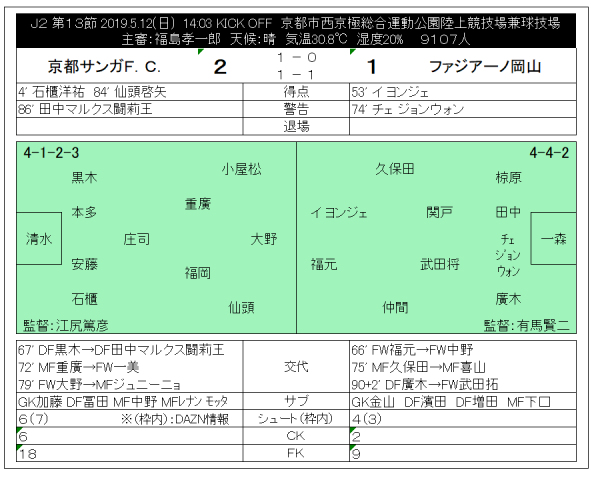 2019 J2 第13節 京都 2-1 岡山 @西京極