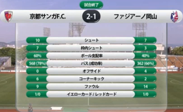 前回対戦成績 2018年9月15日 J2第33節 岡山2-2京都@Cスタ