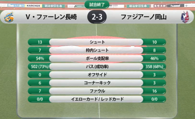 その後、FW福元、中野と若い攻撃陣を投入した岡山だったが、長崎の勢いを