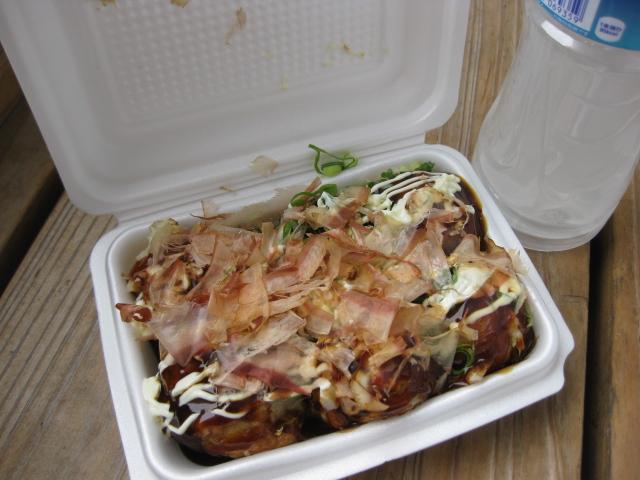 長崎グッズを数点購入し、スタグルは、焼ちゃんぽん(500円)とたこ焼き(500円)