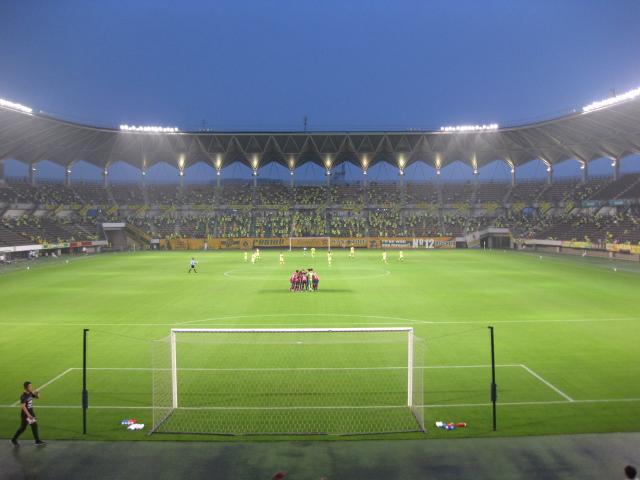 試合1時間前に少し強い雨が降り出すも、小雨になり、千葉ボールでキックオフ。