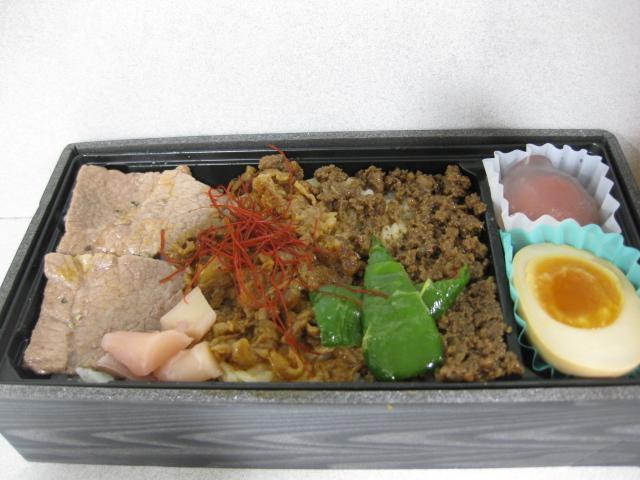 朝食は、新幹線の構内で購入した「黒毛和牛三昧1300円」