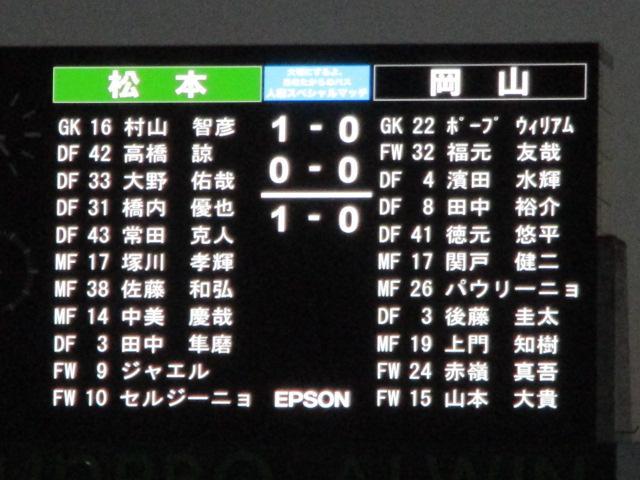 阻んだものの、前半18分、岡山の右サイドでミスが出て、松本に先制点を献上。
