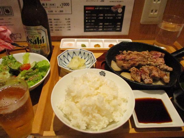 豚ステーキ定食(1000円税込)とビール小瓶(400円税込)