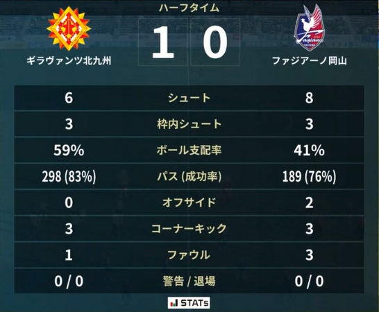 前半終了時のDAZNのスタッツ