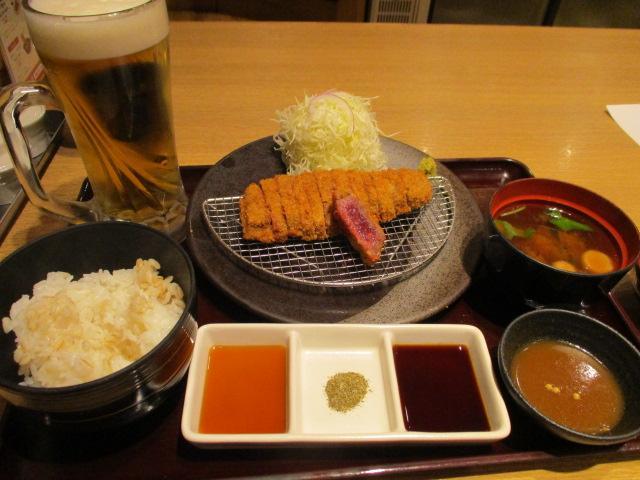 牛ロースカツ膳(1380円税抜)と生ビール(290円税抜)