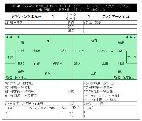 2020 J2 第37節 北九州 1-1 岡山 @ミクスタ