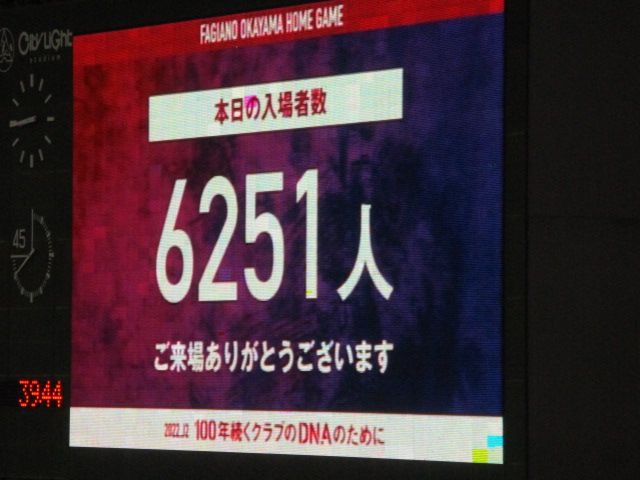 前回ホーム金沢戦(5○1)より831人増加した入場者数