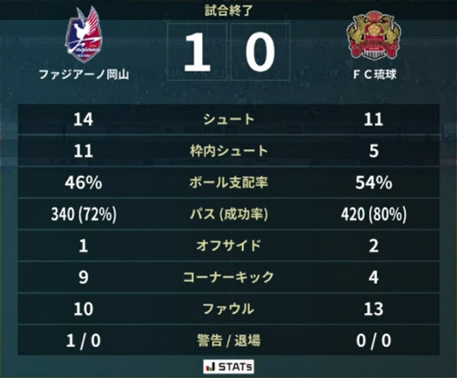 前回対戦成績 2022年4月9日 J2第9節 琉球3-3岡山@タピスタ