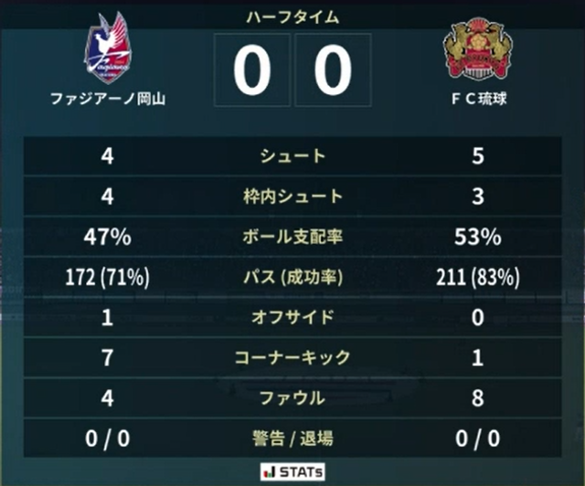 前半終了時のDAZNのスタッツ