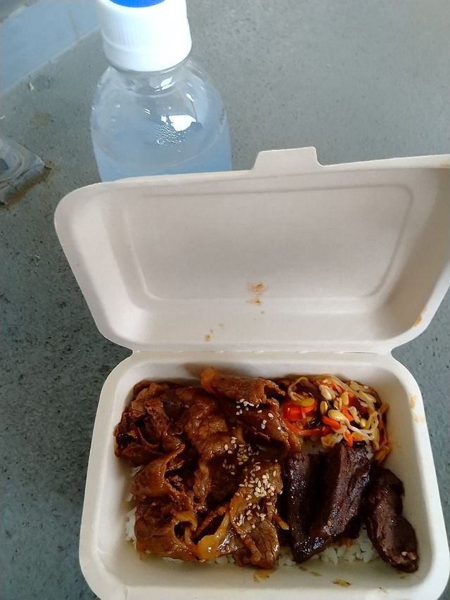 スタジアム外の外の店で10分程並んで買えた 和牛たれ漬け焼肉&ハラミのW合盛り丼1500円