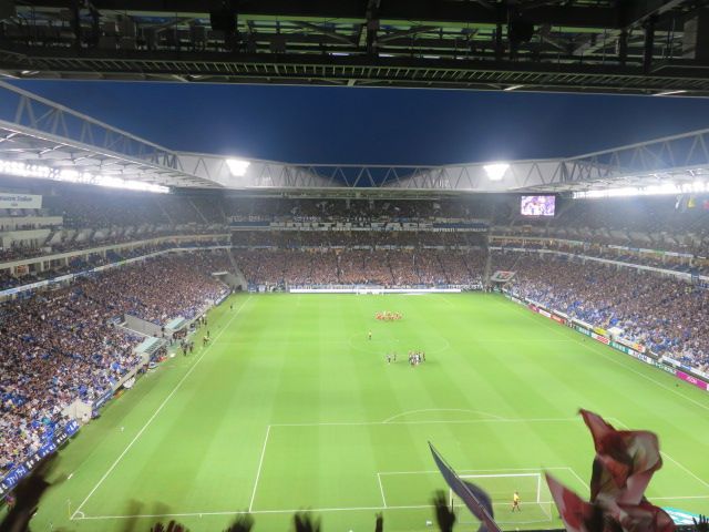 選手入場後のアウェイゴール裏(バックスタンド寄り)