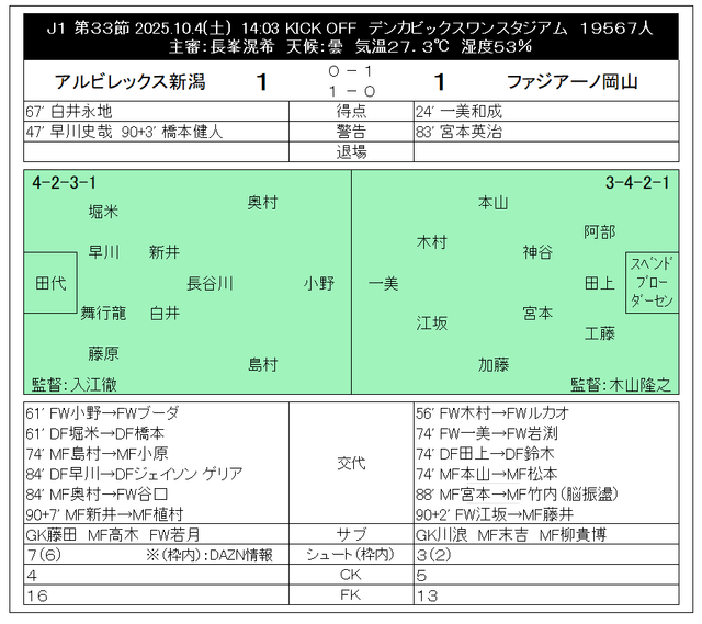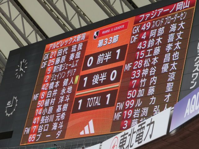 2025 J1 第33節 新潟 1-1 岡山@デンカS