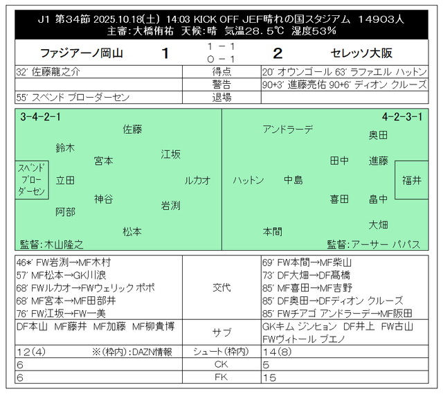 2025 J1 第34節 岡山 1-2 C大阪@JFEス