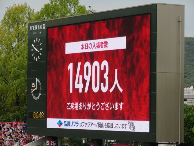 前回ホーム横浜FC戦(0△0)より1366人増加した入場者数