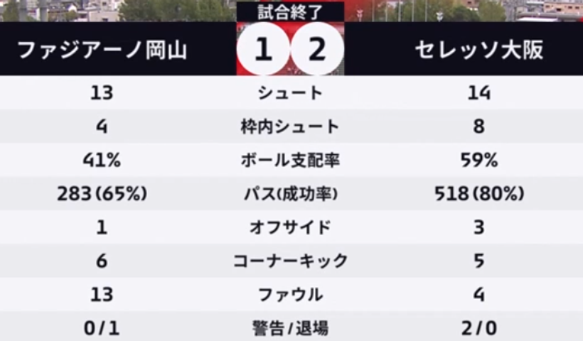 岡山はC大阪にシーズンダブルを食らい、7試合勝利無しとなった。