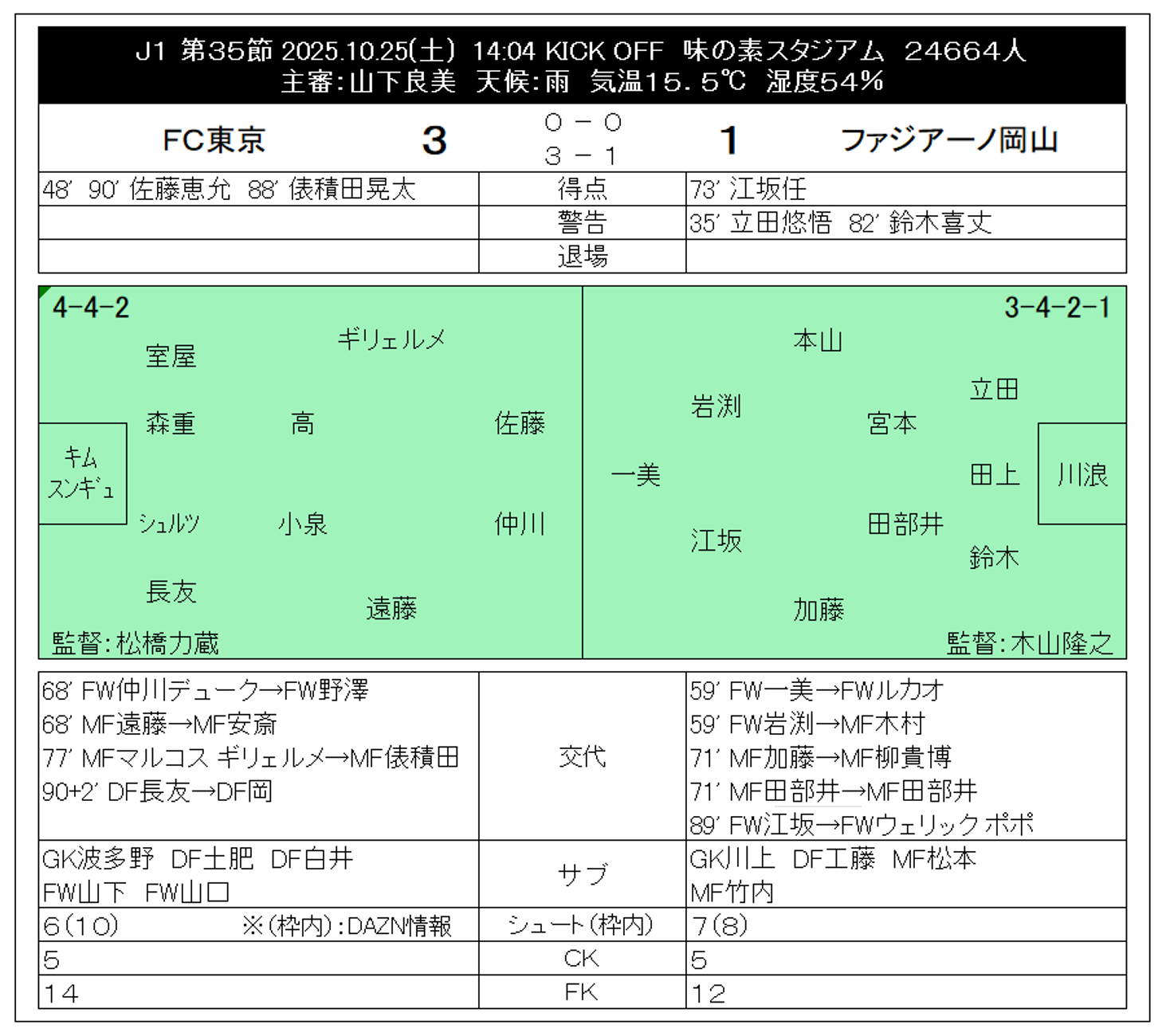 2025 J1 第35節 FC東京 3-1 岡山@味スタ