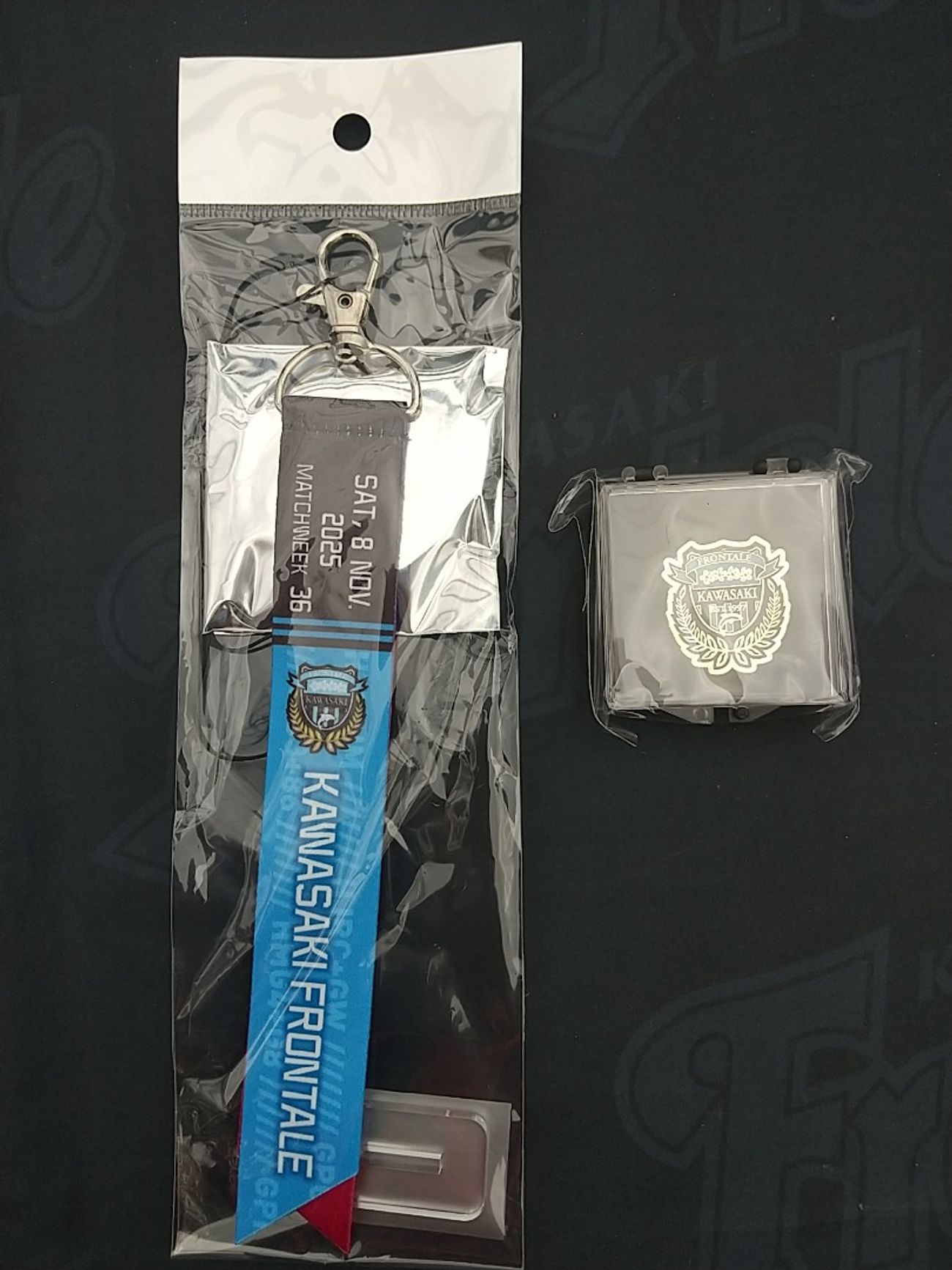 グッズショップでエンブレムピンバッジ880円とマッチデーボンフィン1000円購入
