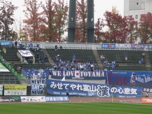 スカパー10月度の月間ベストゴールに選出された押谷の表彰式とJ2通算100試合出場の石原への花束贈呈が行われた後、富山ボールでキックオフ。開始1分も経たない内にCF押谷がPA内で反転してシュートを放ち、前節アウェイ徳島戦(0●2)から5人入れ替えた岡山が積極的な立ち上がりを見せたが、CK6本連続から徐々にペースを掴んだ富山が、前半27分、右サイドからMF木本選手のクロスにMF舩津選手がヘディングシュートを放つと、バーに当たり、その跳ね返りがFW苔口選手の胸に当たりゴール至近距離から右足ジャンピングボレーが決まり先制された。その後、なおも富山ペースで進むも、岡山が千明、押谷のシュートで徐々に攻勢を強めると、前半37分、岡山のプレスに動じない富山の長いボール回しをCB竹田が奪ってから左→右→左サイドへのパス交換から、OH石原とのワンツーで中へ切り込んだWB田所がペナルティーアークにいたCF押谷へパスを出すと、これをダイレクトで左斜め前へ叩くと、富山GK守田選手との1対1になったOH妹尾が冷静にゴールへ流し込み、同点で前半折り返し。