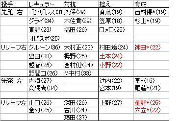 ということで,現時点で足りないのは左腕の先発投手ということになります。