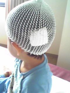 ホッチキスのようなもので頭を縫いつけました。
