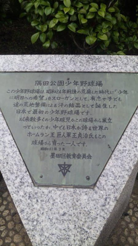 この墨田公園少年野球場こそ、日本で最初の少年野球場なのである。