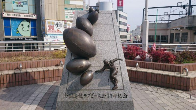会場は宝塚運動場、甲子園球場、西宮球技場などを経て、第42回大会(昭和38年)から現在の近鉄花園ラグビ ー場へと移ったが、豊中で始まった大会は、延べ2,100余のチーム、5万人以上の選手が楕円球を追い、世紀をまたいだ2000~2001年のシーズンに80回の節目を迎えた。ここにラグビーの一層の隆盛を願い、大会発祥の地の豊中に記念碑を建設する。