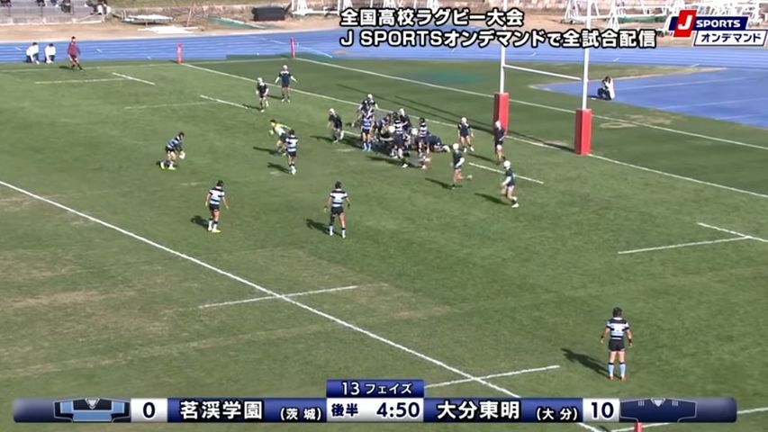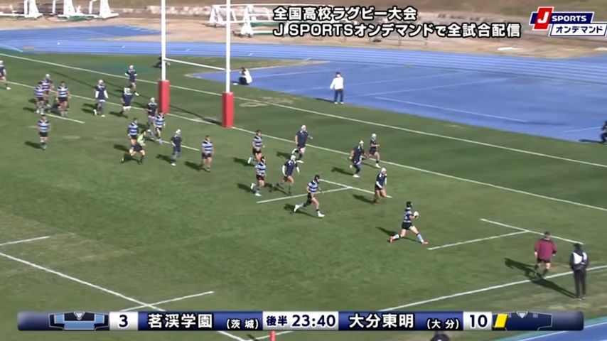 後半の茗溪学園はほぼ左ラインで攻めて、ここぞという時に右ラインの大外に振って見事に2本取った。