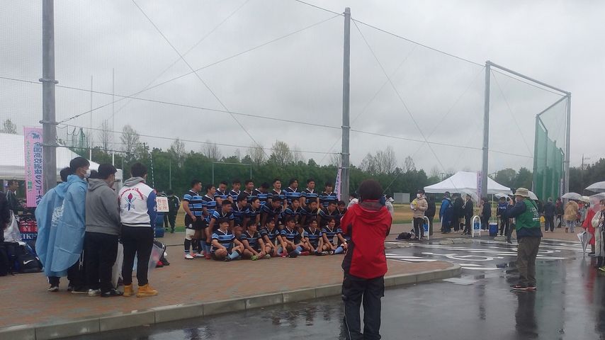前半を終え、 0 - 10 とリードされ苦しい展開の茗渓学園は、後半4分に敵陣深くに入って13フェイズを重ね、粘り強く守る相手に対して、10番がドロップゴールを狙った。これが見事に成功、3 - 10 とする。