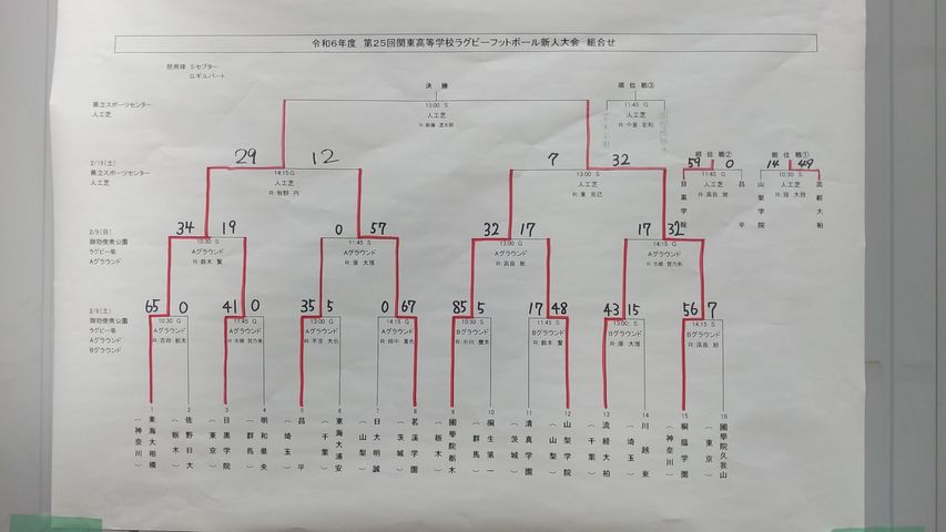 2月16日の第25回関東高校ラグビー新人大会決勝戦で、桐蔭学園と東海大相模が対戦する事になった。この両校は神奈川県新人大会決勝で、14 - 14 のスコアで両校優勝になっている。