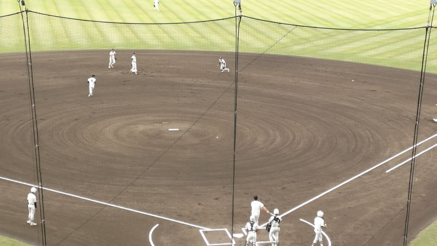 茨城高校も、6回表にツーアウト二塁から、タイムリーヒット、タイムリー内野安打で2点を返す。さらに、7回表にはノーアウト満塁のチャンスに犠牲フライで1点を返し、3点差につめよる。しかし、後が続かず追加点を奪えなかった。