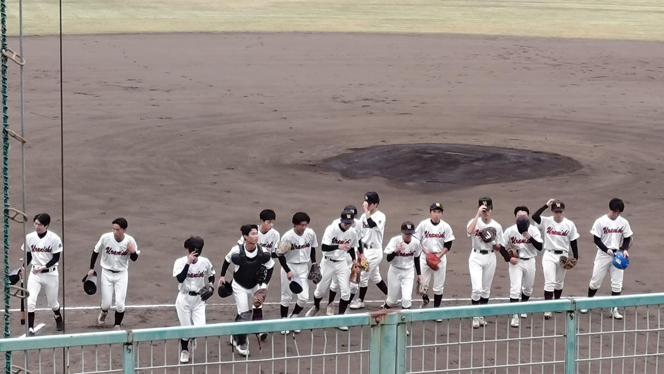 野球部は1999年(平成11年)に創部され、ユニフォームはアイボリーホワイト、胸には赤い筆記体で「URANISHI」と書かれている。左袖には校章、右袖には野球王国の証「埼玉」の文字が付されている。黒い帽子にはオレンジ色で「U」と「N」が交わるマーク、黒いストッキングには赤の3本線が入っている。マンガの西浦高校のユニフォームとほぼ一緒だ。