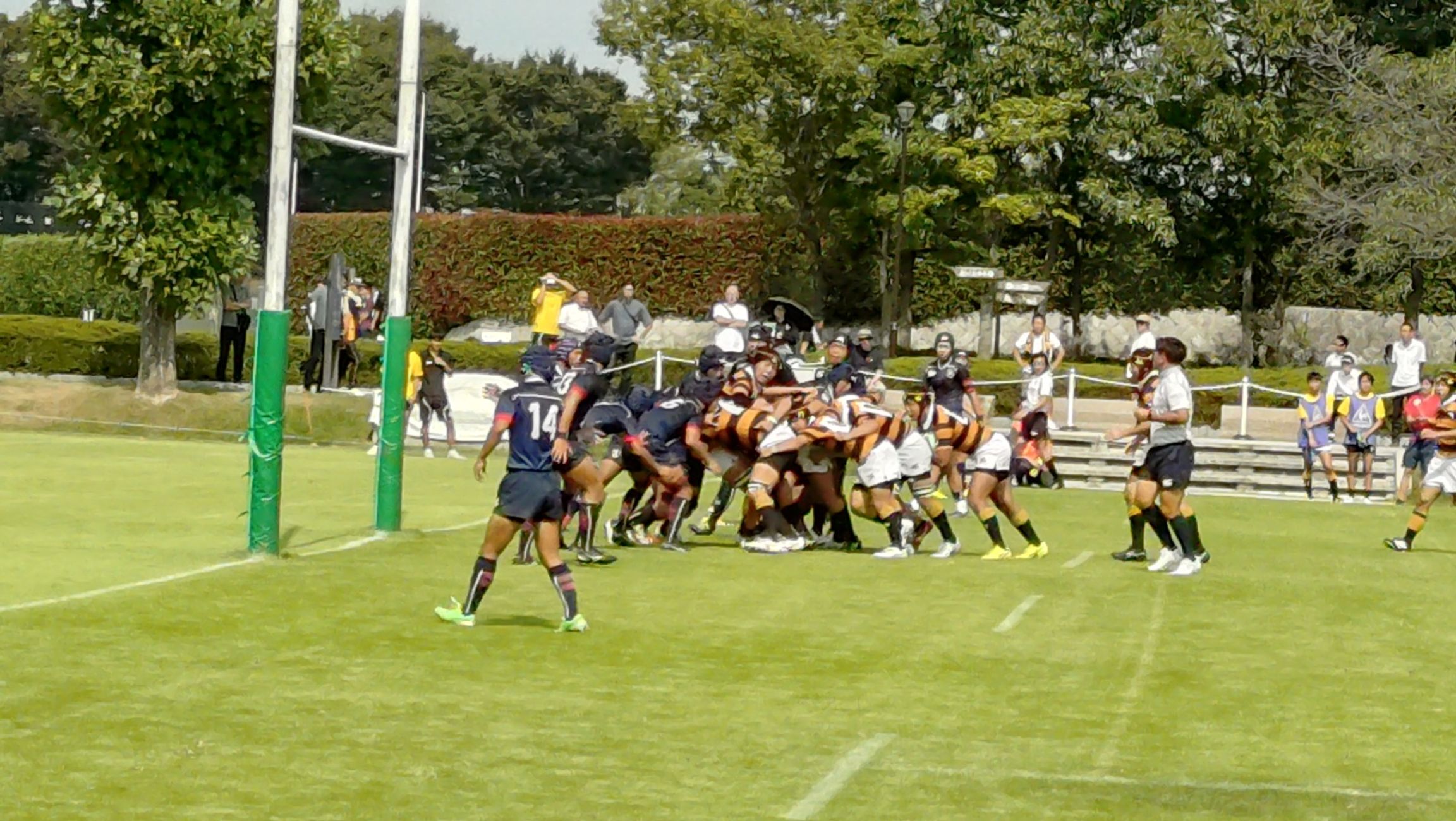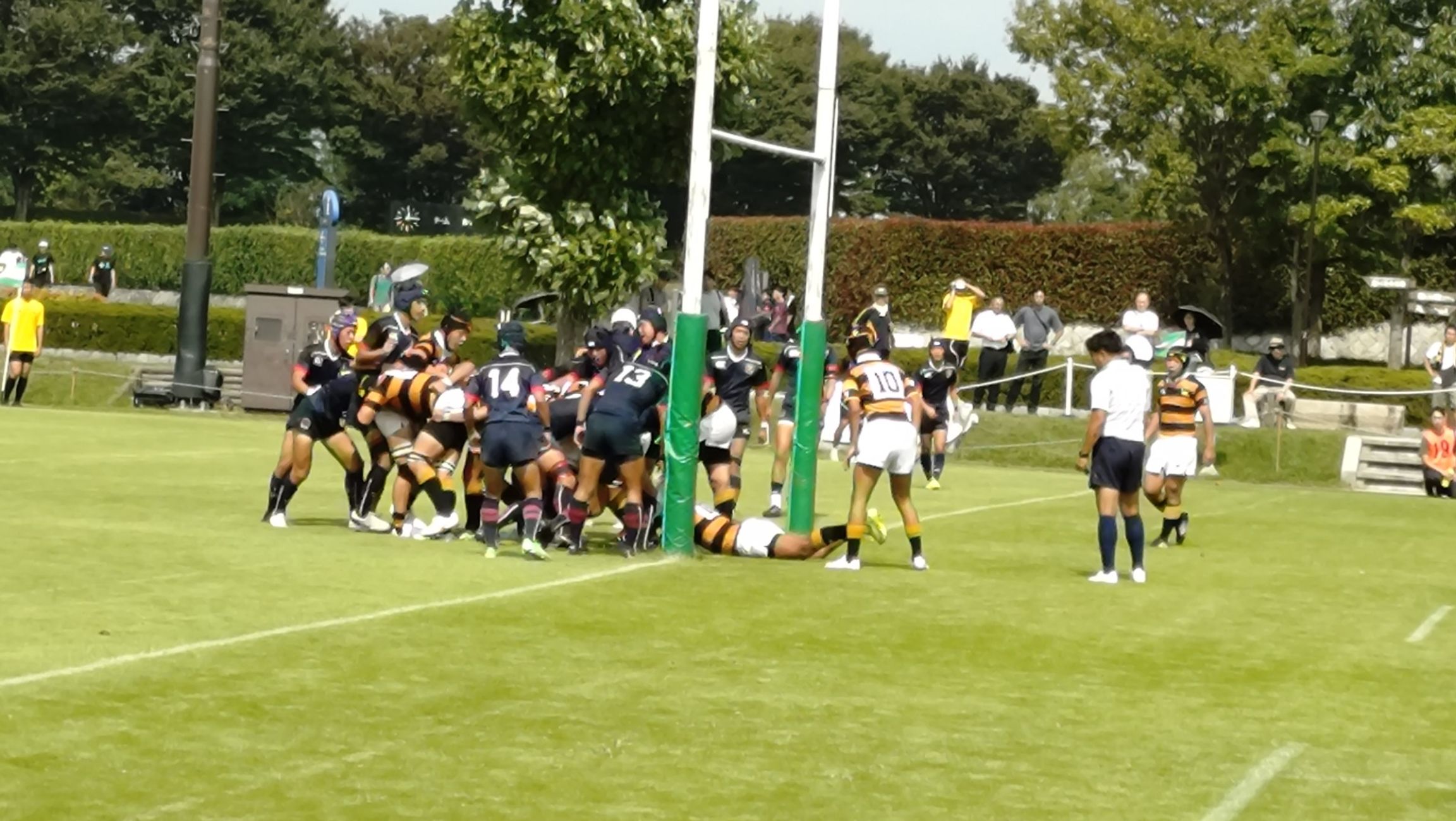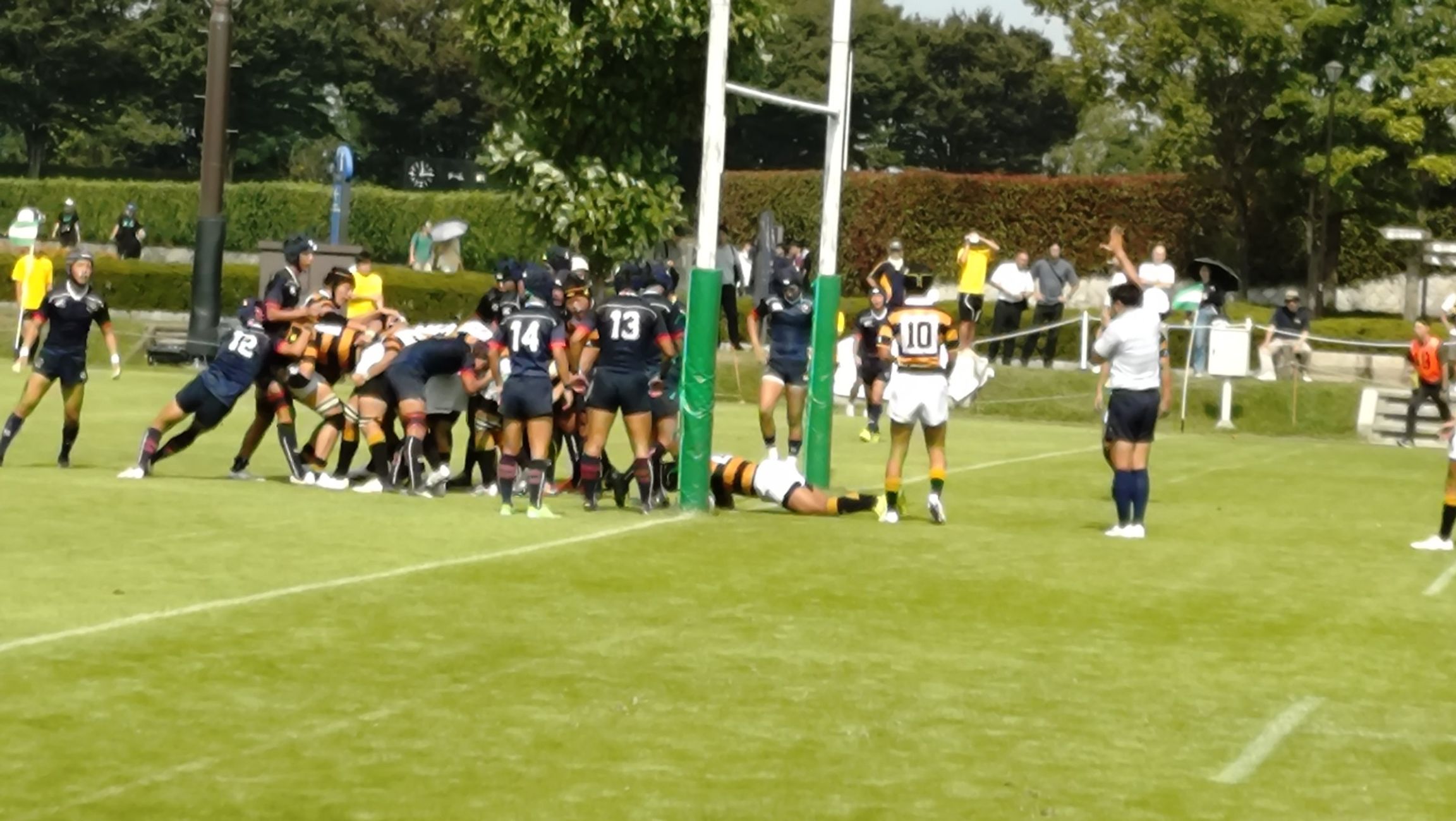 後半8分にトライを許して、14 - 19 とされたものの、後半19分に磨いてきたモール攻撃でボールを継続して前進し、左中間へトライを決め 21 - 19 と再び試合をひっくり返した。