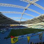 ちなみにピッチとスタンドはこの複合ビルの屋上。陸上用レーンがあるものの、