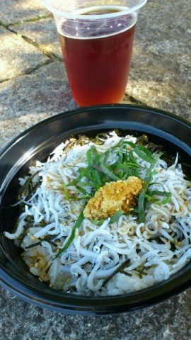 言わずと知れた釜揚げしらす丼。(アップルシナモンエールと共に)