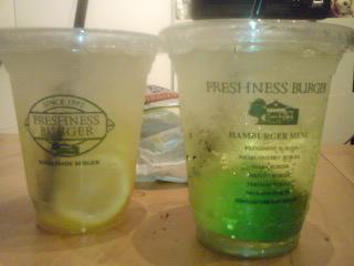 今日は『甘さ』は置いといて、フレッシュネスバーガーより『ライム・ソーダ』。(ちなみに左隣はまるる氏ご所望の『レモネード』)