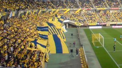 ゴール裏を見渡せるメイン側の隅っこに座っての観戦なので、なんか普段とは違う落ち着かない気分[e814][e282]