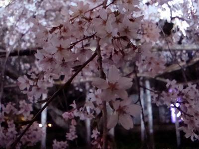 雨に濡れて、薄いピンク色の花びらが漆黒の夜空に映える姿は良いねぇ!