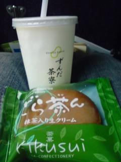 ずんだシェイクと抹茶どら焼き(生クリーム入り)です[e420][e420][e420][e420][e420][e420]
