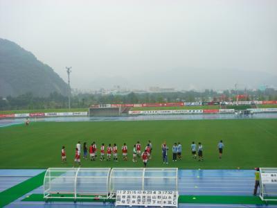 今日は水島と熊本。スタンドから遠目に見るとアーセナル対ボルトンに見えなくもないですな。ユニフォームが・・・。