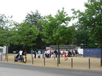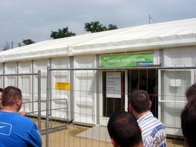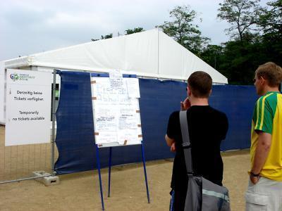 このテントの中がチケットセンター。銀行の窓口のようなブースが並んでいます。