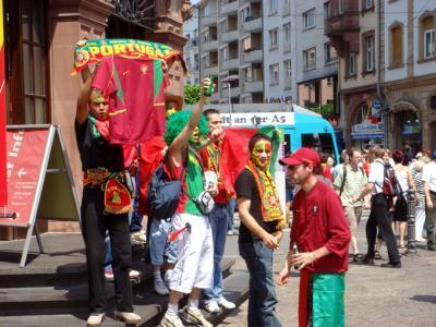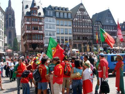 ポルトガル、イラン両国のファンが朝から盛り上がっています。