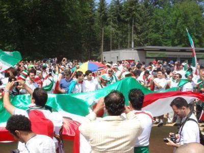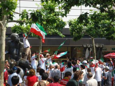 新市街のショッピングエリアではイランのファンが決起集会。イラン!イラン!
