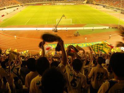 前半はお馴染みのいわゆる「走るサッカー」でチャンスを多く作りますが、クロスの精度が最悪。逆にあっ、という一瞬の隙を突いて先制され前半を折り返します。千葉は後半に羽生と巻を投入し、良いリズムでゲームを支配します。前半10分も経たないうちに楽山がドリブルで左サイドのペナルティエリアへ侵入しGKと1対1になりかけます。。。と、ここで大連のDFがペナルティエリア内で悪質なタックル。当然レッドが出されると思いきや・・・。なぜか警告。結果的に2枚目だったので退場ですが、あれはどう考えても決定的得点機会の阻止に該当するはずなので一発退場が妥当。ゴール裏がちょっと荒れ気味です。しかも主審はペナルティスポットを指さなかったので、FKにされたのかと思いました。あの位置でFKはありえないだろと思っていたらやっぱりPK。主審のジェスチャーが曖昧でやっぱりゴール裏は荒れ気味。
