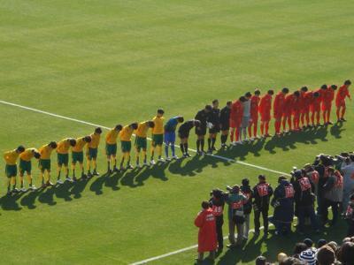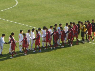 前半も中盤を過ぎる頃になると八千代の最終ラインも大分修正され、4番の選手の鋭い読みとカバーリングで丸岡のチャンスは摘み取られてゆきます。今日の影のMVPは間違いなくこの4番の選手ですな。まだ高校生なのに応援団には『鉄人』とまで呼ばれていました。さすがです。