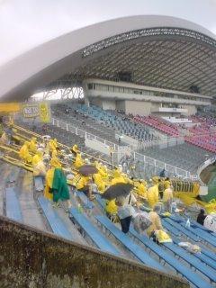 試合前から雨が降ったり止んだりで落ち着かないビッグアーチ。