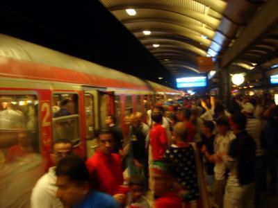 ドイツの街から街へと代表チームと一緒に移動を続ける各国のファン。その多くは列車で移動を続けます。