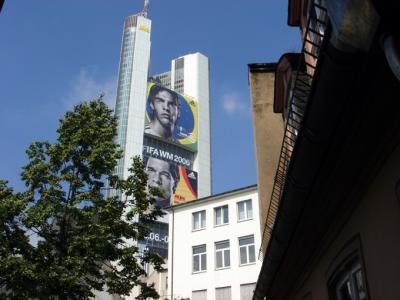 近代的なビルと中世っぽい建築物が融合するフランクフルト。ゲーテハウスの窓からカカーやバラックが見えました。